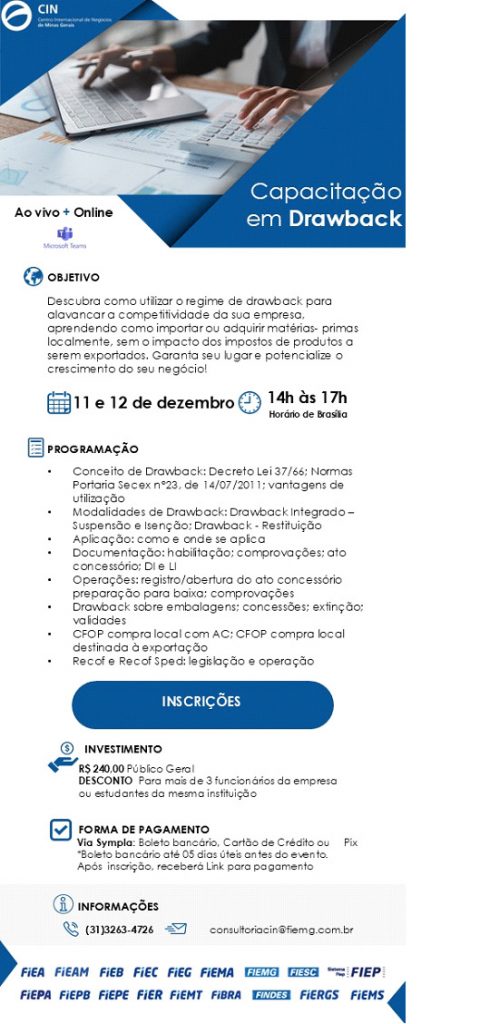 Objetivo: Apresentar os tipos e utilizações do drawback para que a empresa possa