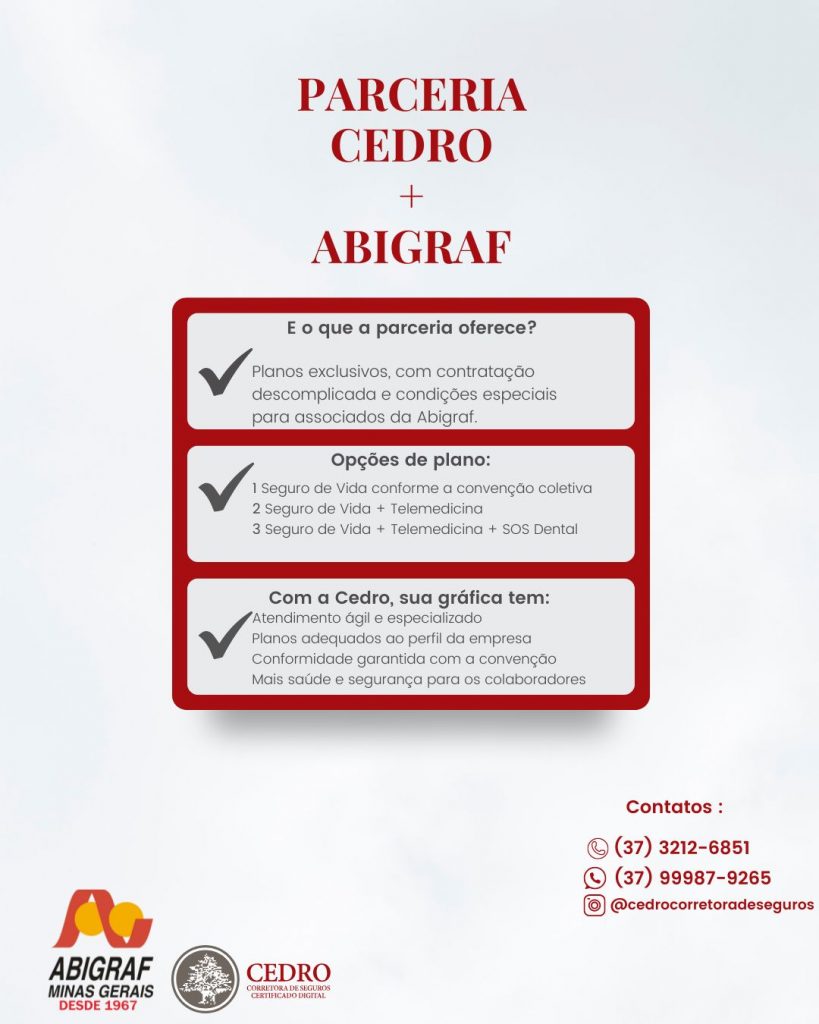 A CEDRO seguros é parceira da ABIGRAF & SIGEMG, por este motivo, possuí condições especiais no fechamento do seguro de seus colaboradores.